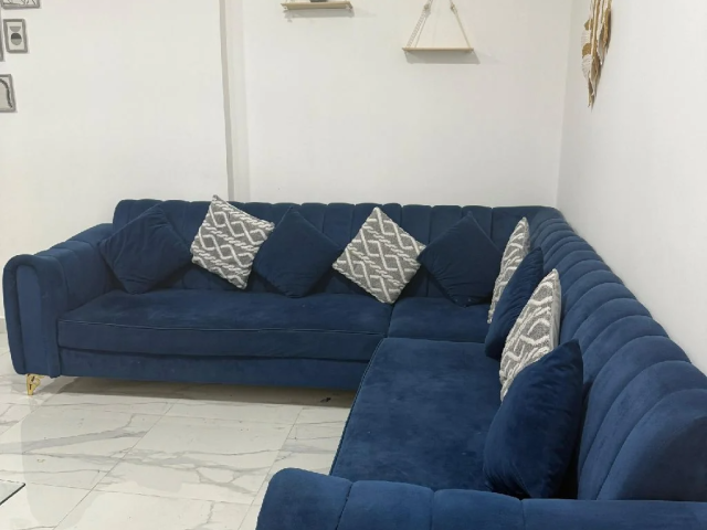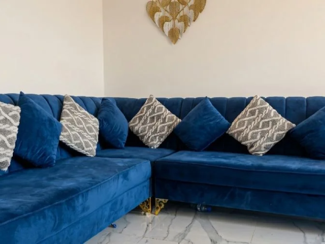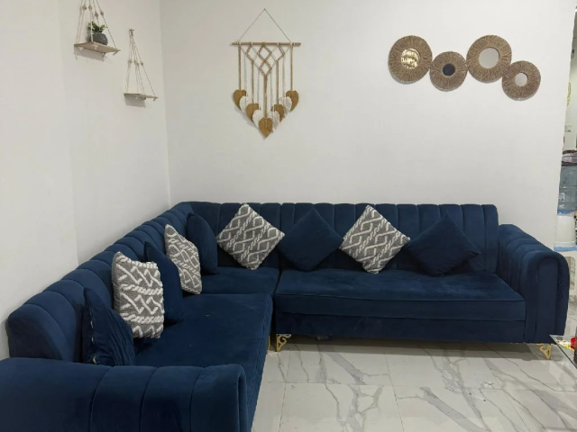 7-Seater Blue Velvet Sofa for Urgent Sale – Sharjah