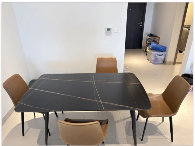 Dining set for sale, originally purchased from United Furniture for AED 3,400, now available for only AED 400. Very good condition Stylish and durable Perfect for any home Available for quick sale. Contact for more details.