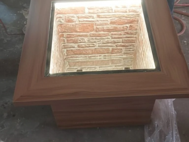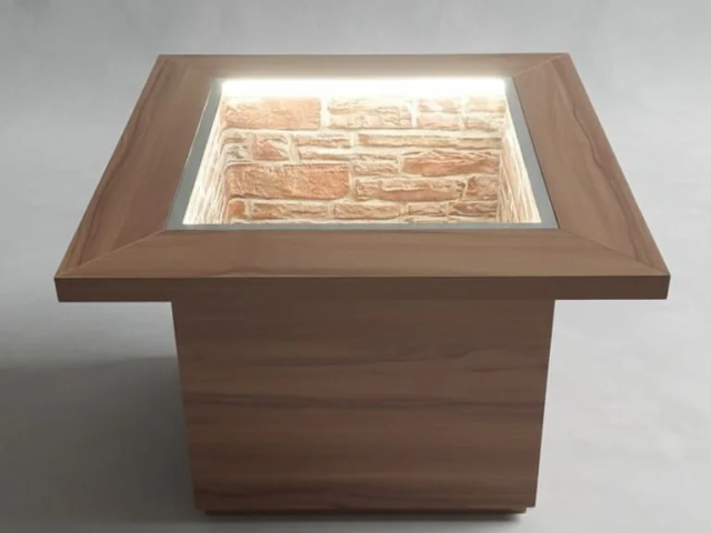 Innovative Design: Built-in lighting feature reflecting a well and staircase design that descends visually to the base — creating stunning depth and visual intrigue.