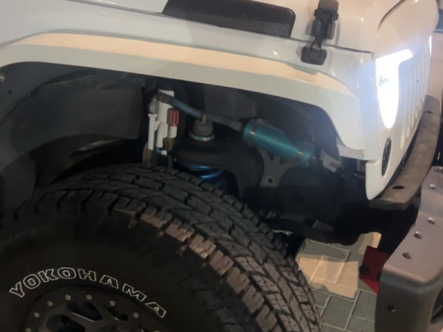 GCC Jeep Wrangler 2013 with 184,000 km only. Features include: new battery, new ownership, new full insurance, 2024 tires, and new service completed. Additional upgrades: King 2.5 suspension, full Borla exhaust system, Yokohama tires year 2024 315/70/R17 (5 pieces), Fuel rims, blue interior, Rough Country steering stabilizer, Android screen, front Rubicon bumper, and rear aluminum bumper.