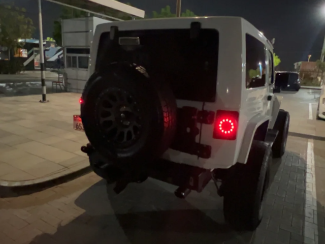 GCC Jeep Wrangler 2013 with 184,000 km only. Features include: new battery, new ownership, new full insurance, 2024 tires, and new service completed. Additional upgrades: King 2.5 suspension, full Borla exhaust system, Yokohama tires year 2024 315/70/R17 (5 pieces), Fuel rims, blue interior, Rough Country steering stabilizer, Android screen, front Rubicon bumper, and rear aluminum bumper. Read more