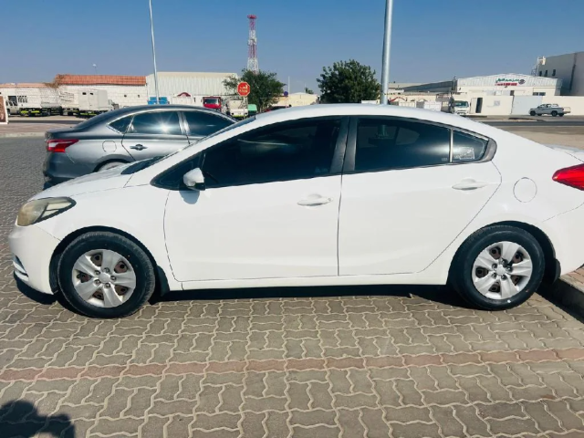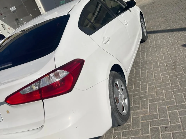 Available for sale: Kia Cerato, manufactured in 2014, made in South Korea. Vehicle color is white. The vehicle has been inspected, insured, and is ready for transfer and renewal under the new owner's name.