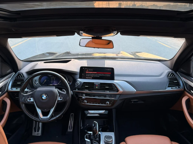 BMW X3 sDrive 30i V4 with 2.0L engine, model year 2019. Price: 79,000 AED. Odometer: 98,000 km. American specifications. Exterior color: Black / Interior color: Brown. Engine and performance: 2.0L engine, 4 cylinders, turbocharged. Power: 248 horsepower (185 kW) at 5,200 RPM. Torque: 350 Nm at 1,450 RPM. Transmission: 8-speed automatic (Steptronic). Top speed: 209 km/h (130 mph).