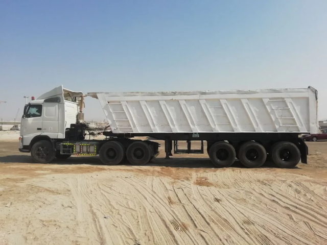 للبيع: تريلا قلاب فولفو موديل 2007 مع صندوق ثري إكس موديل 2017، تحتوي على ملكية لمدة 7 أشهر.